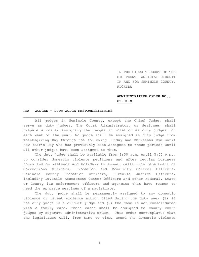05-01-S IN RE: JUDGES – DUTY JUDGE RESPONSIBILITIES – ORDERED 1/7/2005 BY JAMES E.C. PERRY