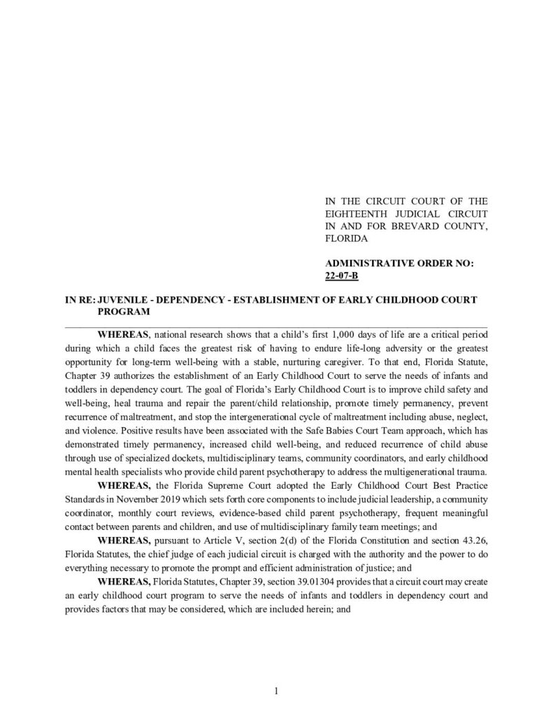 22-07-B IN RE: JUVENILE – DEPENDENCY – ESTABLISHMENT OF EARLY CHILDHOOD COURT PROGRAM – ORDERED 1/27/22 BY JESSICA RECKSIEDLER