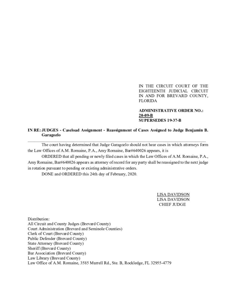 20-09-B, SUPERSEDES 19-37-B IN RE: CASELOAD ASSIGNMENT/REASSIGNMENT OF CASES ASSIGNED TO BENJAMIN B. GARAGOZLO – ORDERED 2/24/2020, LISA DAVIDSON
