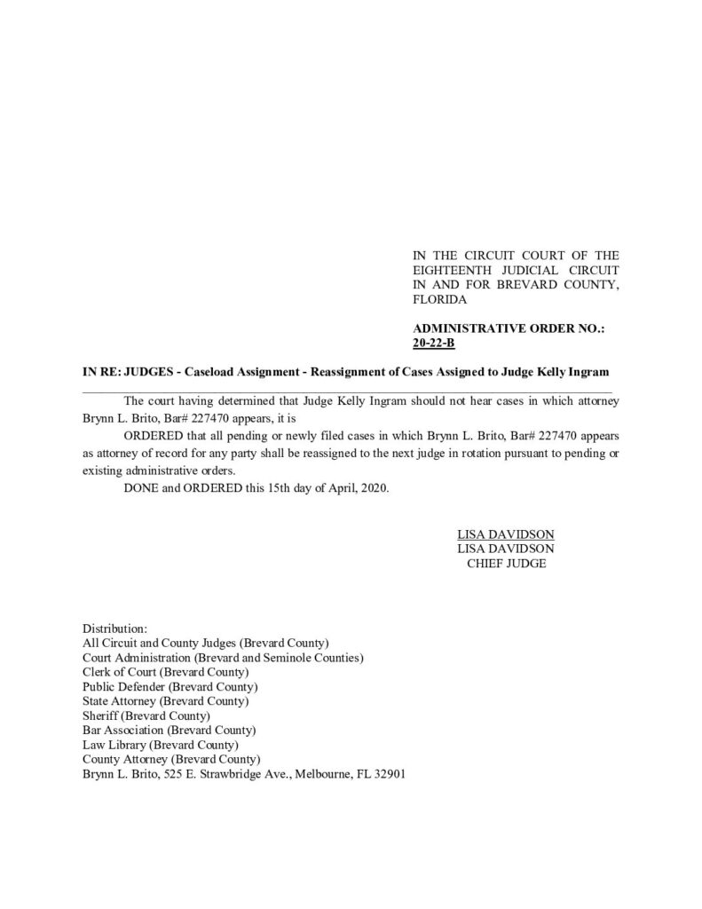 20-22-B: CASELOAD ASSIGNMENT/RE-ASSIGNMENT OF CASES ASSIGNED TO JUDGE KELLY INGRAM – ORDERED 4/15/2020 BY LISA DAVIDSON