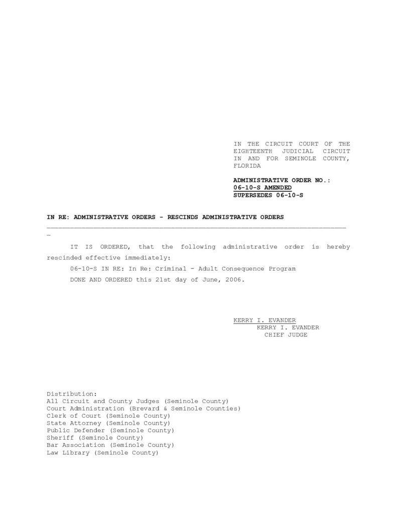 06-10-S AMENDED, SUPERSEDES 06-10-S IN RE: ADMINISTRATIVE ORDERS – RESCINDS ADMINISTRATIVE ORDERS – ORDERED 6/21/2006 BY KERRY I. EVANDER,