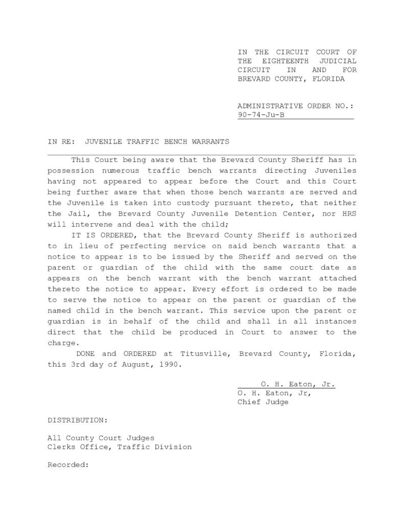 90-74-B (90-74-JU-B): JUVENILE TRAFFIC BENCH WARRANTS – ORDERED 8/03/1990 BY O. H. EATON, JR.