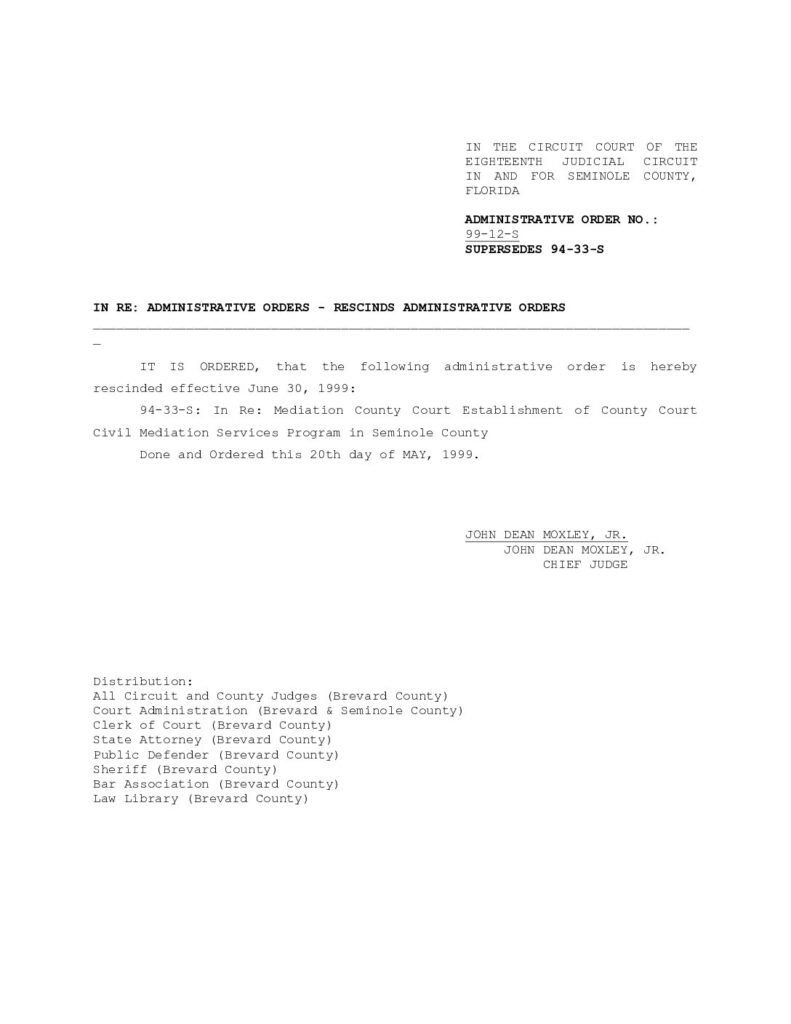 99-12-S IN RE: ADMINISTRATIVE ORDERS – RESCINDS ADMINISTRATIVE ORDERS – ORDERED 5/20/1999 BY JOHN DEAN MOXLEY, JR.