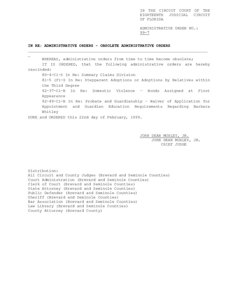 99-7 IN RE: ADMINISTRATIVE ORDERS – OBSOLETE ADMINISTRATIVE ORDERS – ORDERED 2/02/1999 BY JOHN DEAN MOXLEY, JR.