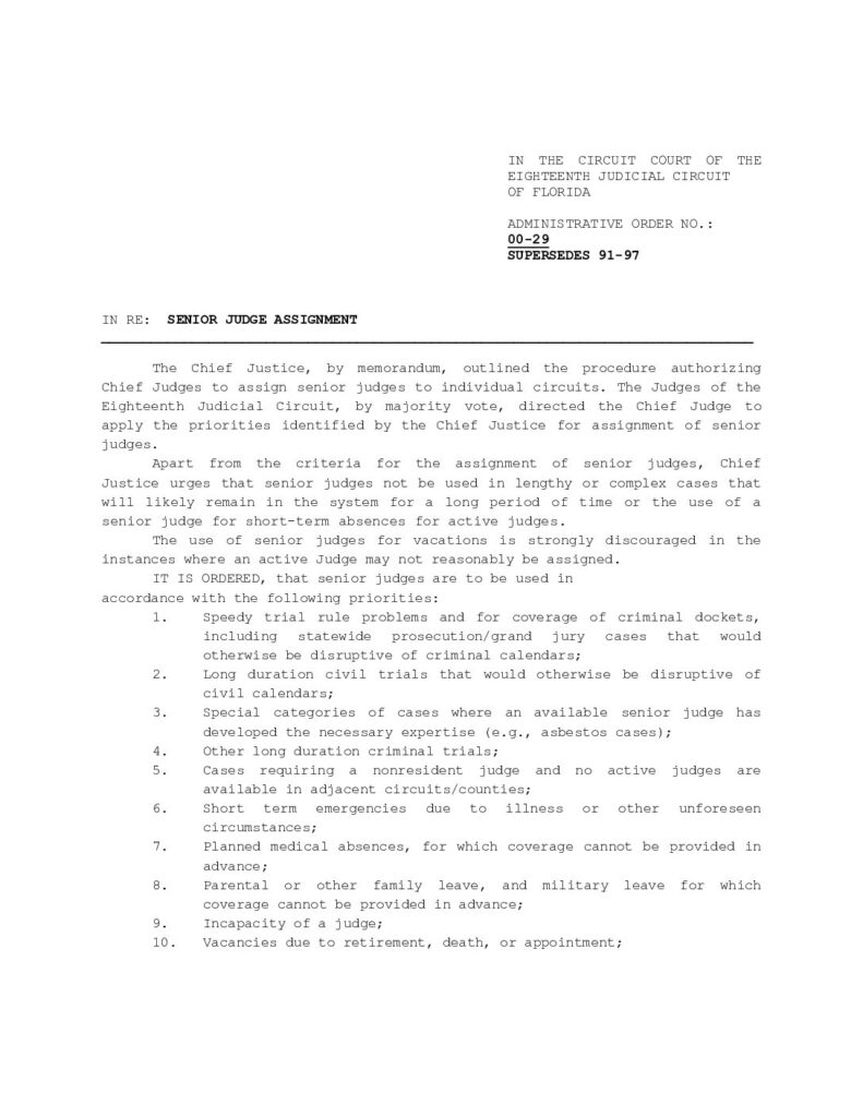 00-29, SUPERSEDES 91-97 IN RE: SENIOR JUDGE ASSIGNMENT – ORDERED 12/18/2000 BY J. PRESTON SILVERNAIL