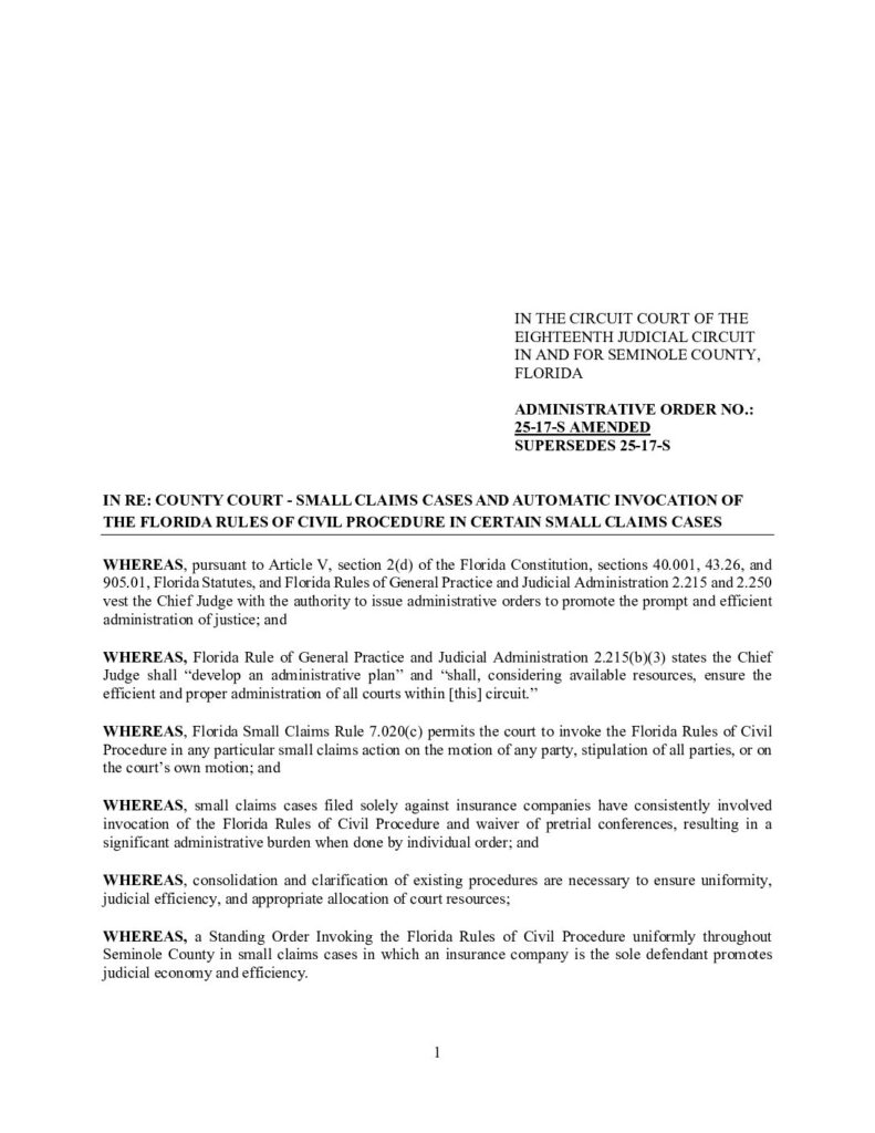 25-17-S AMENDED, SUPERSEDES 25-17-S IN RE: COUNTY COURT – SMALL CLAIMS PRE-TRIAL CONFERENCES IN PIP CASES – ORDERED 08/278/2025 BY MELANIE CHASE