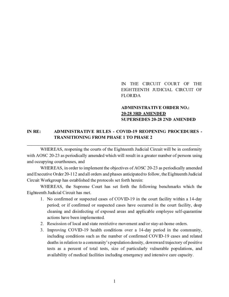 20-28 3RD AMENDED, SUPERSEDES 20-28 2ND AMENDED IN RE: ADMINISTRATIVE RULES – COVID-19 REOPENING PROCEDURES – TRANSITIONING FROM PHASE 1 TO PHASE 2 – ORDERED 5/10/2020 BY LISA DAVIDSON