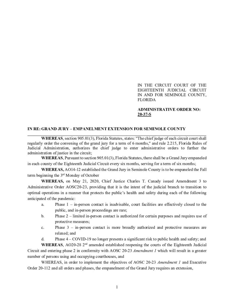 20-37-S IN RE: GRAND JURY – EMPANELMENT EXTENSION FOR SEMINOLE COUNTY – ORDERED 9/17/2020 BY CHARLES ROBERTS
