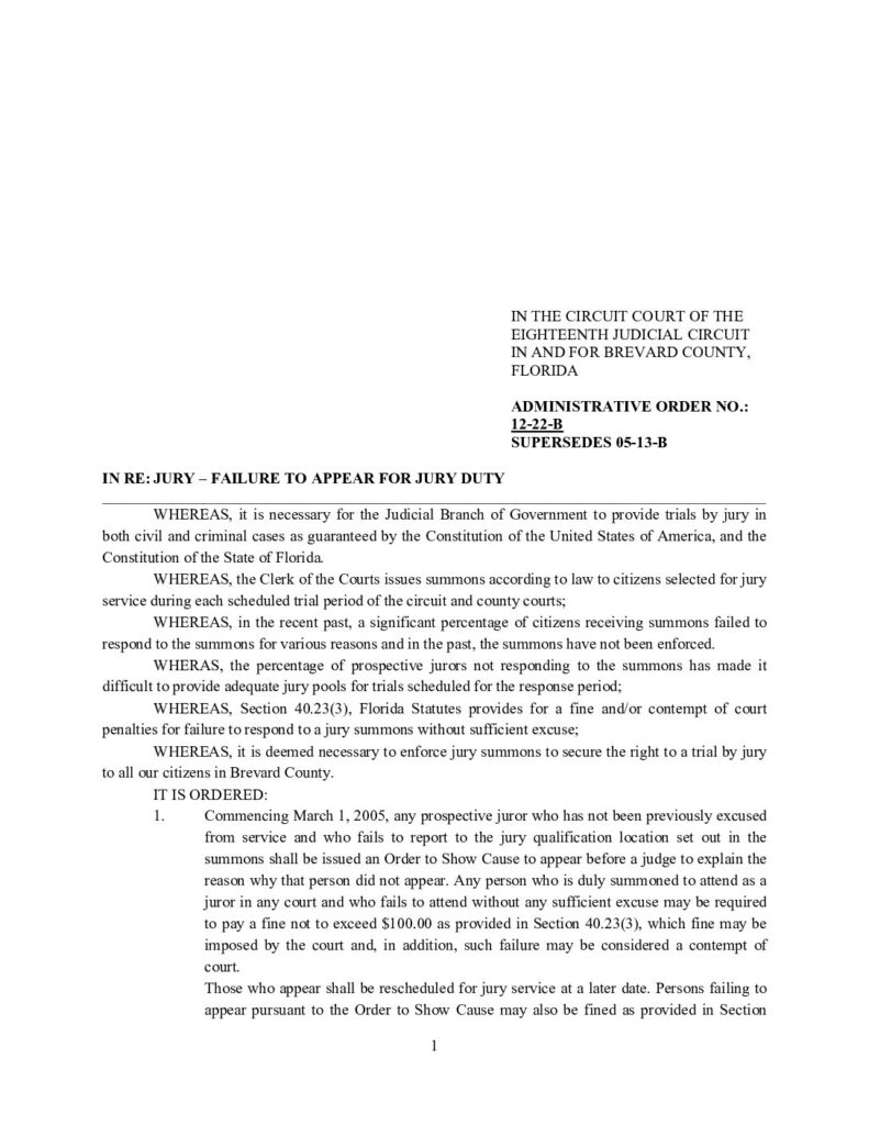 12-22-B, SUPERSEDES 05-13-B IN RE: JURY – FAILURE TO APPEAR FOR JURY DUTY – ORDERED 6/25/2012 BY CHARLES ROBERTS (ACTING CHIEF)