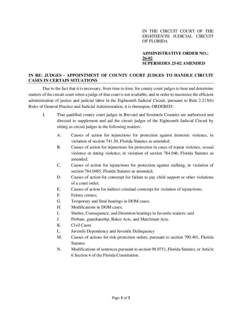 25-02 AMENDED, SUPERSEDES 25-02 RE: APPOINTMENT OF COUNTY COURT JUDGES TO HANDLE CIRCUIT CASES IN CERTAIN SITUATIONS – ORDERED 07/01/2025 BY MELANIE CHASE