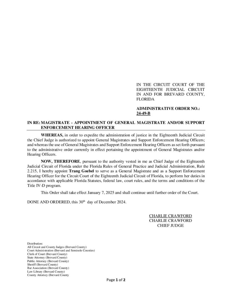 24-49-B IN RE: MAGISTRATE – APPOINTMENT OF GENERAL MAGISTRATE AND/OR SUPPORT ENFORCEMENT HEARING OFFICER – ORDERED 1/07/2025 BY CHARLES G. CRAWFORD