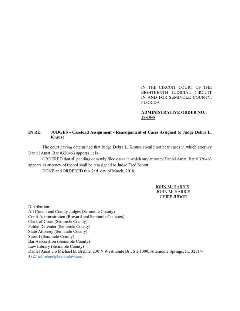 18-10-S JUDGES IN RE: CASELOAD ASSIGNMENT – CASELOAD RE-ASSIGNMENT OF CASES ASSIGNED TO JUDGE DEBRA L. KRAUSE – ORDERED 3/02/2018 BY JOHN M. HARRIS