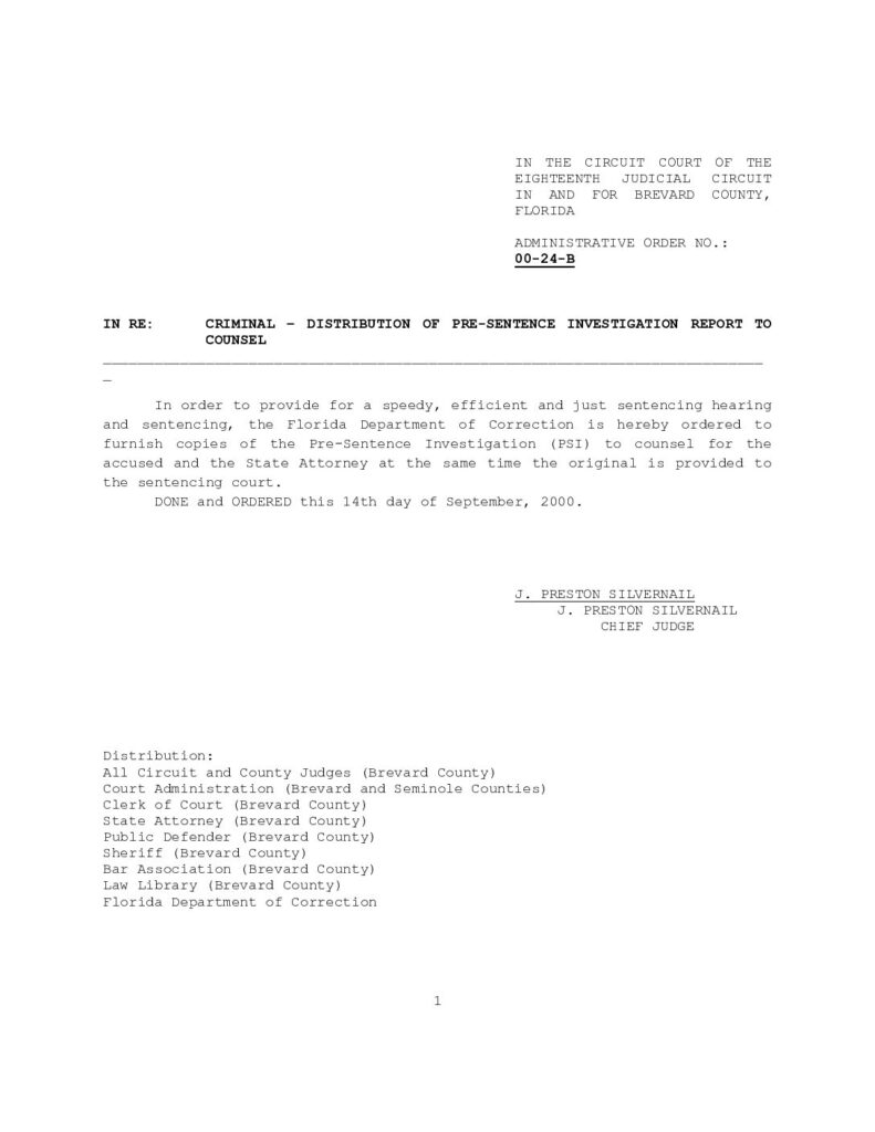 00-24-B IN RE: CRIMINAL – DISTRIBUTION OF PRE-SENTENCE INVESTIGATION REPORT TO COUNSEL – ORDERED 9/14/2000 BY J. PRESTON SILVERNAIL