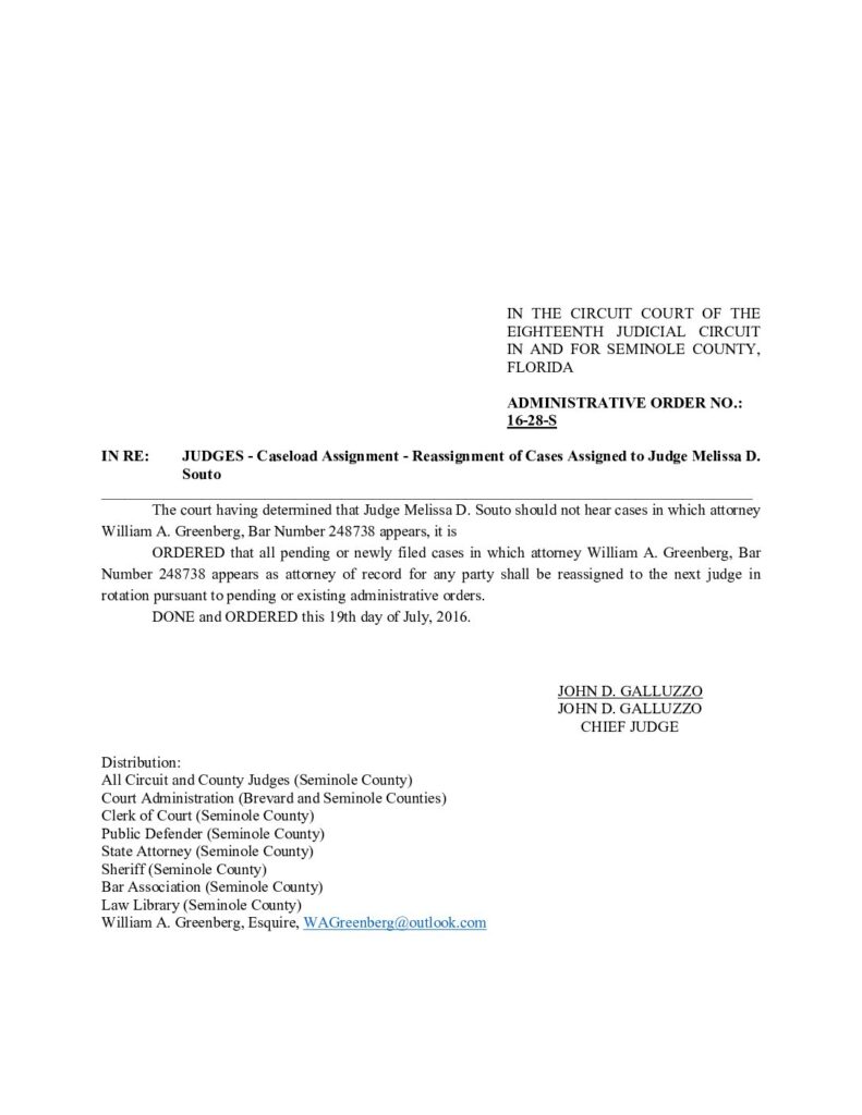 16-28-SI N RE: JUDGES – CASELOAD ASSIGNMENT, CASELOAD REASSIGNMENT OF CASES ASSIGNED TO JUDGE MELISSA D. SOUTO – ORDERED 7/19/2016 BY JOHN D. GALLUZZO