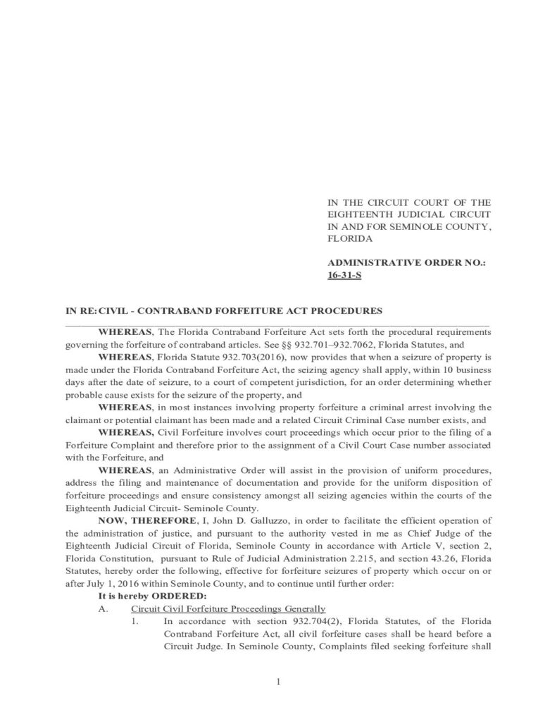 16-31-S IN RE: CIVIL – CONTRABAND FORFEITURE ACT PROCEDURES – ORDERED 8/04/2016 BY JOHN D. GALLUZZO
