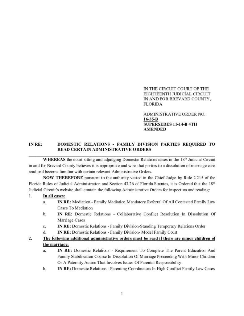 16-35-B, SUPERSEDES 11-14-B 4TH AMENDED IN RE: DOMESTIC RELATIONS – FAMILY DIVISION PARTIES REQUIRED TO READ CERTAIN ADMINISTRATIVE ORDERS – ORDERED 9/09/2016 BY JOHN D. GALLUZZO