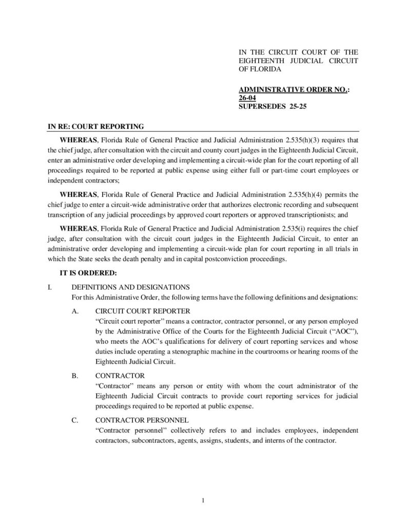 26-04 SUPERSEDES 25-25 IN RE: COURT REPORTING – ORDERED 01/08/2026 BY MELANIE CHASE