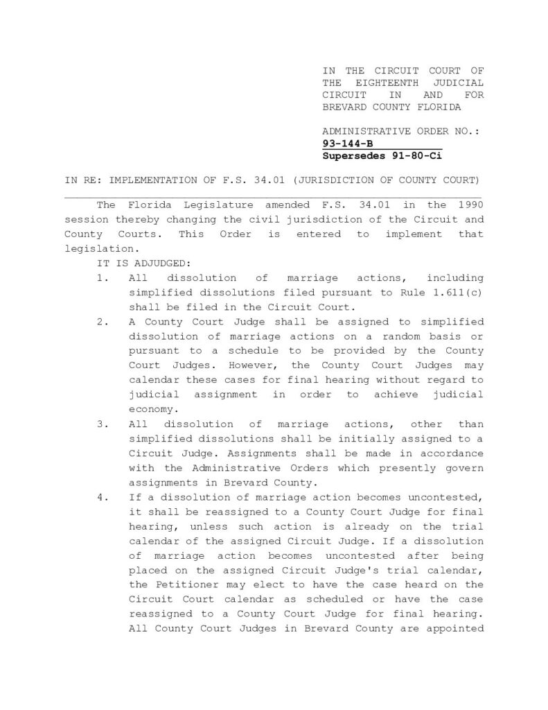 93-144-B, SUPERSEDES 91-80-Ci IN RE: IMPLEMENTATION OF F.S. 34.01 (JURISDICTION OF COUNTY COURT – ORDERED 12/30/1993 BY JERE E. LOBER