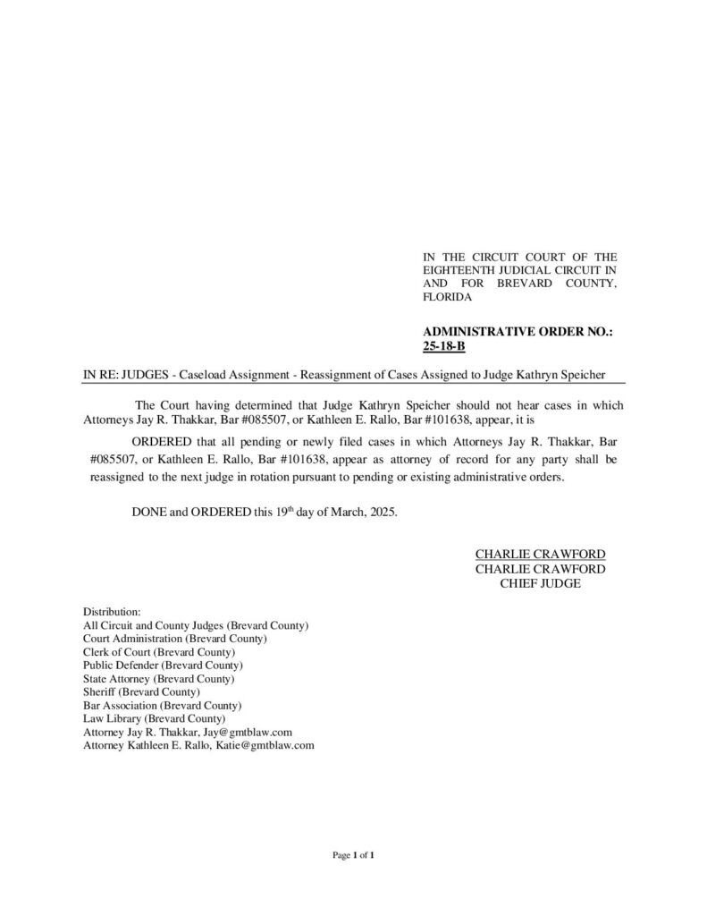 25-18-B IN RE: JUDGES – CASELOAD ASSIGNMENT, REASSIGNMENT OF CASES ASSIGNED TO JUDGE KATHRYN SPEICHER – ORDERED 3/19/2025 BY CHARLES G. CRAWFORD