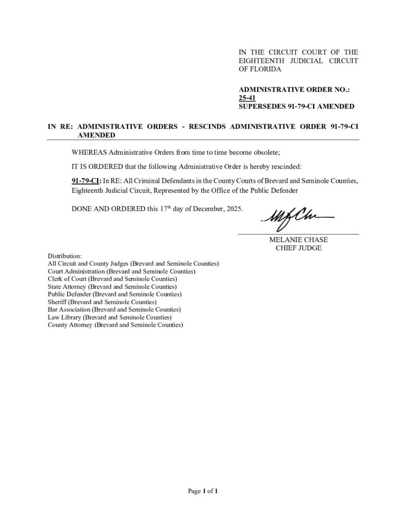 25-41, SUPERSEDES 91-79-CI AMENDED IN RE: ADMINISTRATIVE ORDERS – RESCINDS ADMINISTRATIVE ORDER 91-79-CI AMENDED – ORDERED 12/17/2025 BY MELANIE CHASE