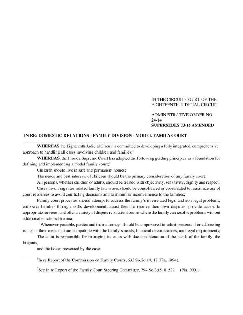 24-14, SUPERSEDES 23-16 AMENDED RE: DOMESTIC RELATIONS – FAMILY DIVISION – MODEL FAMILY COURT – ORDERED 3/05/2024 BY CHARLES G. CRAWFORD