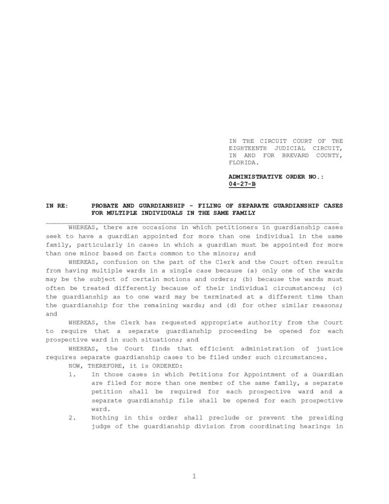04-27-B IN RE: PROBATE AND GUARDIANSHIP – FILING OF SEPARATE GUARDIANSHIP CASES FOR MULTIPLE INDIVIDUALS IN THE SAME FAMILY – ORDERED 8/4/2004 BY JAMES E.C. PERRY
