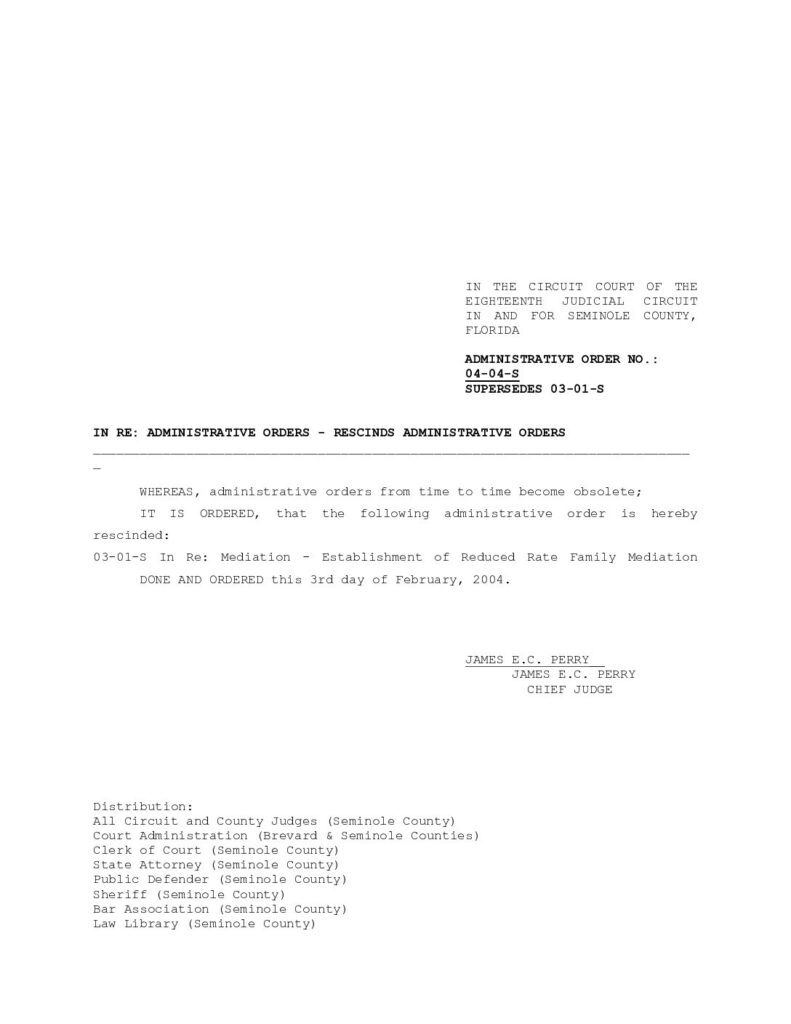 04-04-S, SUPERSEDES 03-01-S IN RE: ADMINISTRATIVE ORDERS – RESCINDS ADMINISTRATIVE ORDERS – ORDERED 2/3/2004 BY JAMES E.C. PERRY