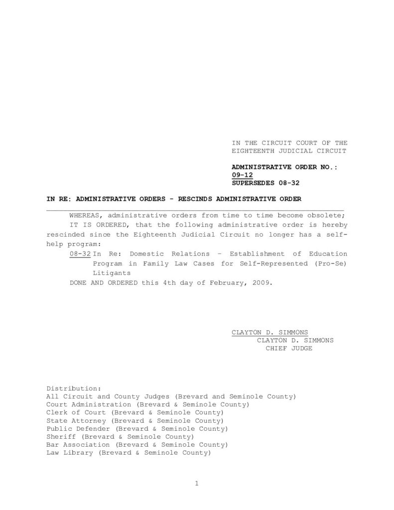 09-12, SUPERSEDES 08-32 IN RE: ADMINISTRATIVE ORDERS – RESCINDS ADMINISTRATIVE ORDER – ORDERED 2/4/09 BY CLAYTON D. SIMMONS