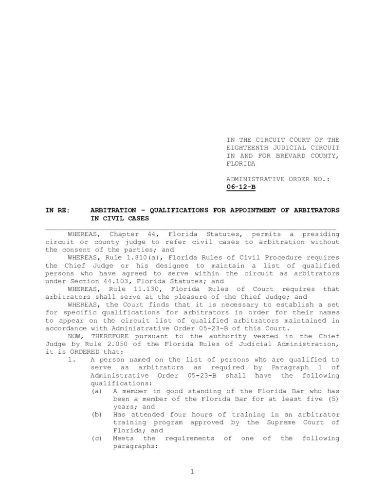 06-12-B IN RE: ARBITRATION – QUALIFICATIONS FOR APPOINTMENT OF ARBITRATORS IN CIVIL CASES – ORDERED 3/15/2006 BY KERRY I. EVANDER