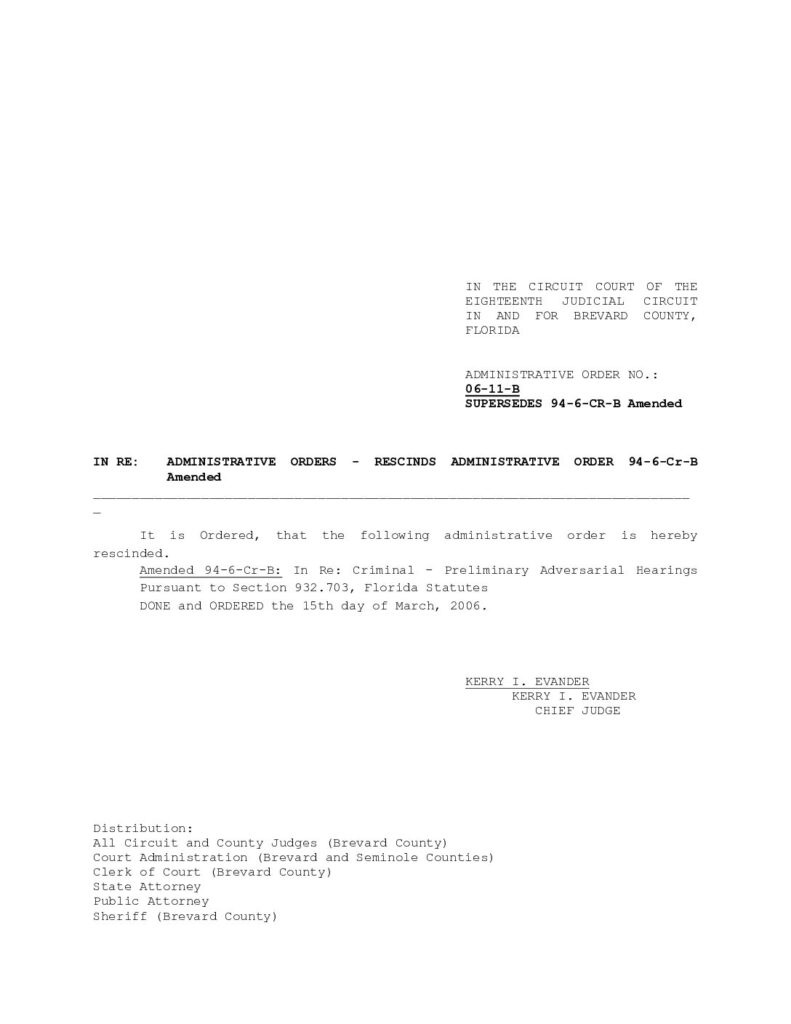06-11-B, SUPERSEDES 94-6-CR-B AMENDED IN RE: ADMINISTRATIVE ORDERS – RESCINDS ADMINISTRATIVE ORDER 94-6-CR-B AMENDED – ORDERED 3/15/2006 BY KERRY I. EVANDER