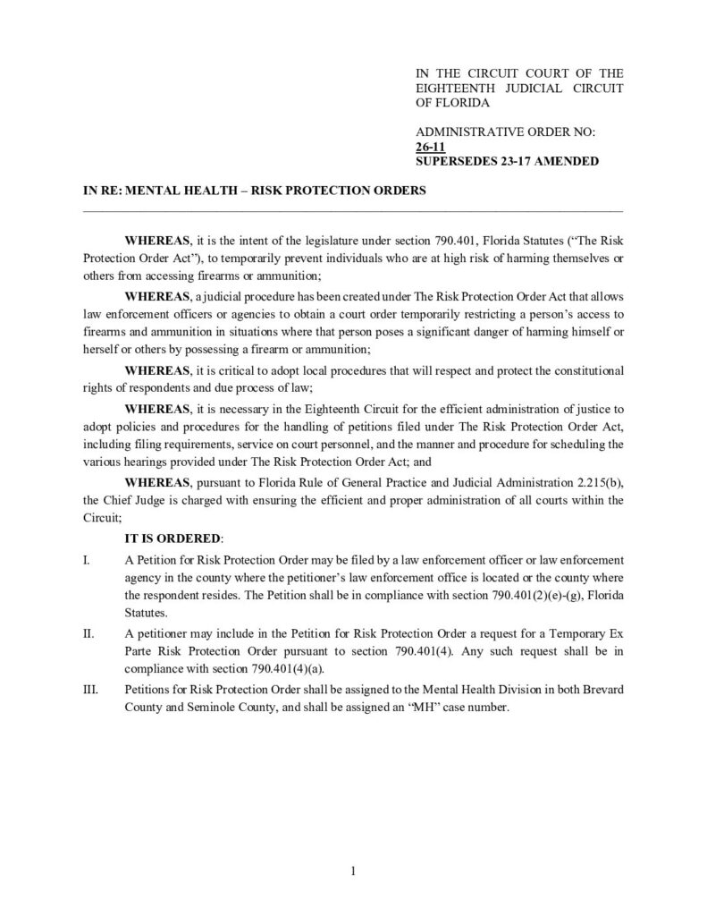23-17 AMENDED, SUPERSEDES 23-17 RE: MENTAL HEALTH – RISK PROTECTION ORDERS – ORDERED 10/23/2023 BY CHARLES G. CRAWFORD