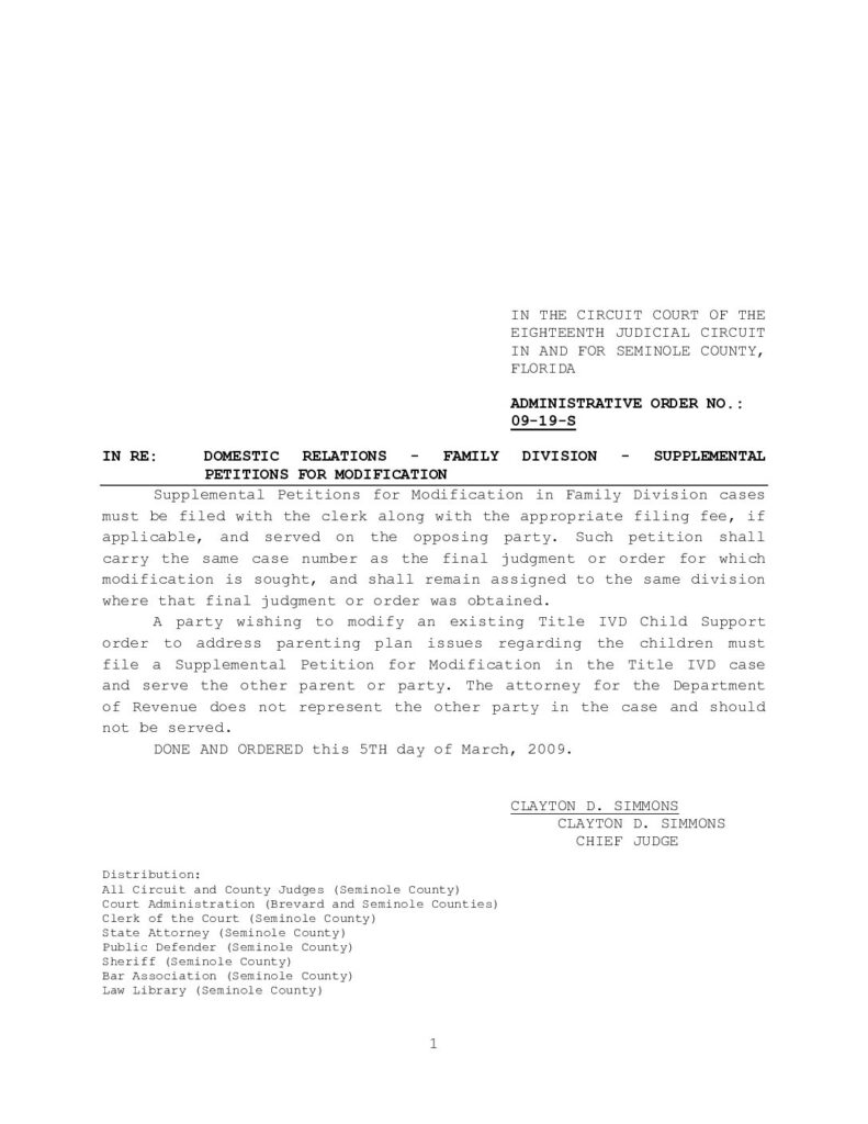 09-19-S IN RE: DOMESTIC RELATIONS – FAMILY DIVISION – SUPPLEMENTAL PETITIONS FOR MODIFICATION – ORDERED 03/05/2009 BY CLAYTON D. SIMMONS