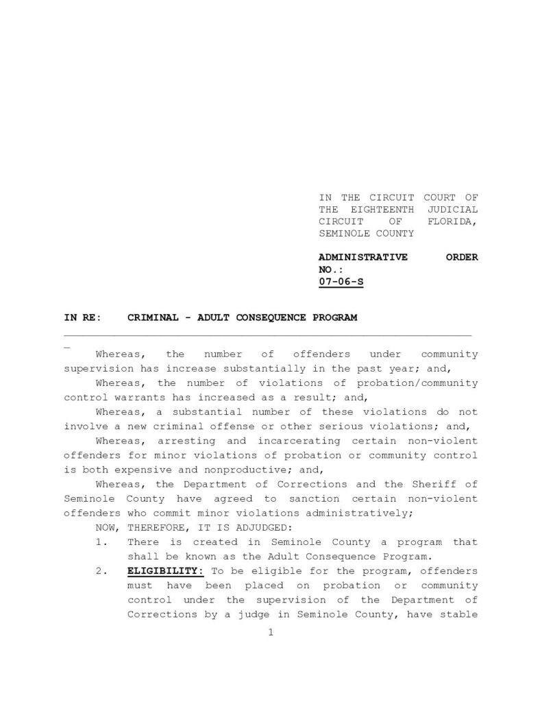 07-06-S IN RE: CRIMINAL – ADULT CONSEQUENCE PROGRAM – ORDERED 1/12/2007 BY TONYA RAINWATER
