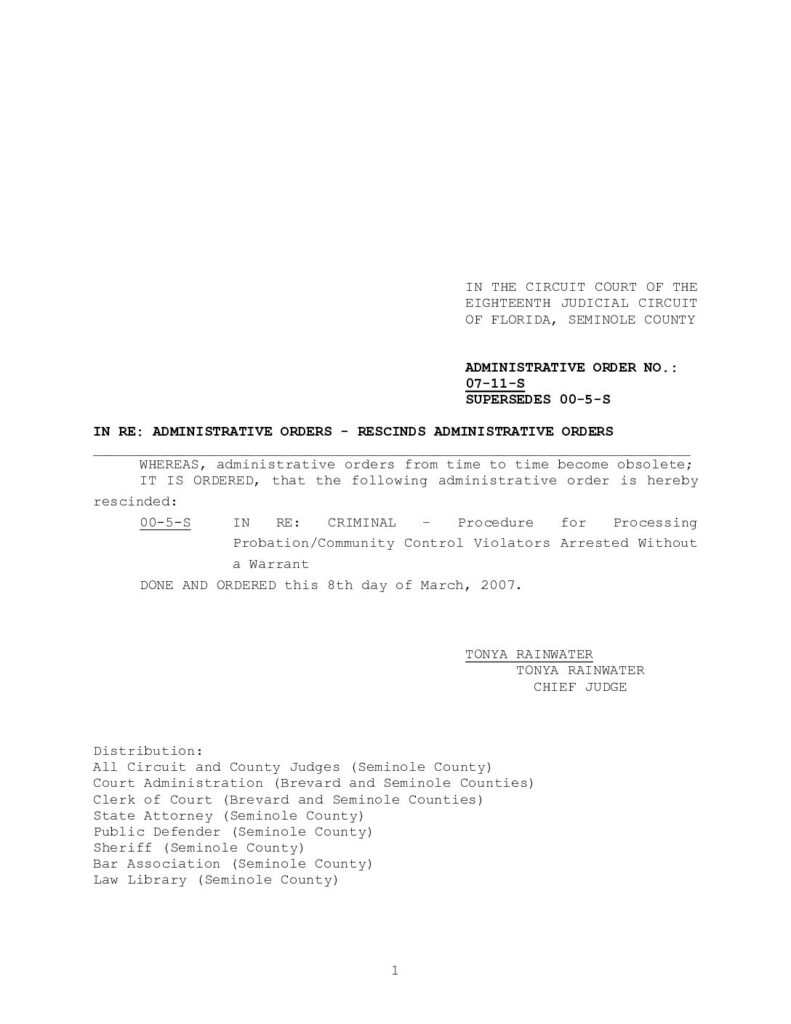 07-11-S, SUPERSEDES 00-5-S IN RE: ADMINISTRATIVE ORDERS – RESCINDS ADMINISTRATIVE ORDERS – ORDERED 3/8/2007 BY TONYA RAINWATER