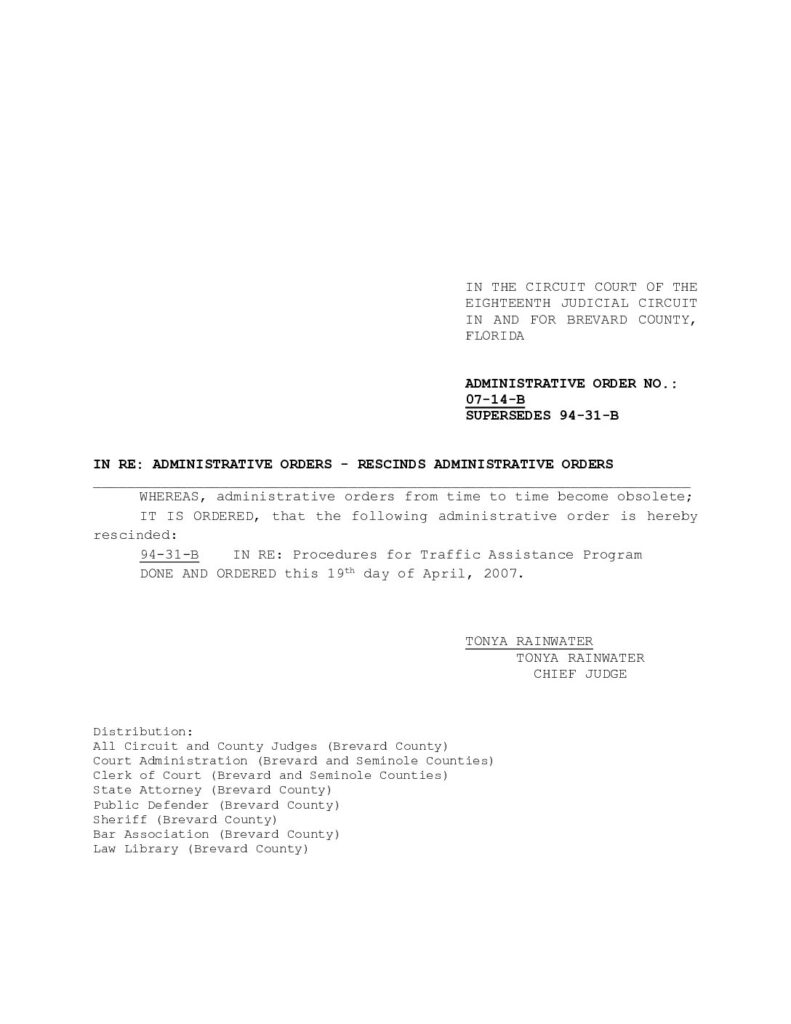 07-14-B, SUPERSEDES 94-31-B IN RE: ADMINISTRATIVE ORDERS – RESCINDS ADMINISTRATIVE ORDERS – ORDERED 4/19/2007 BY TONYA RAINWATER